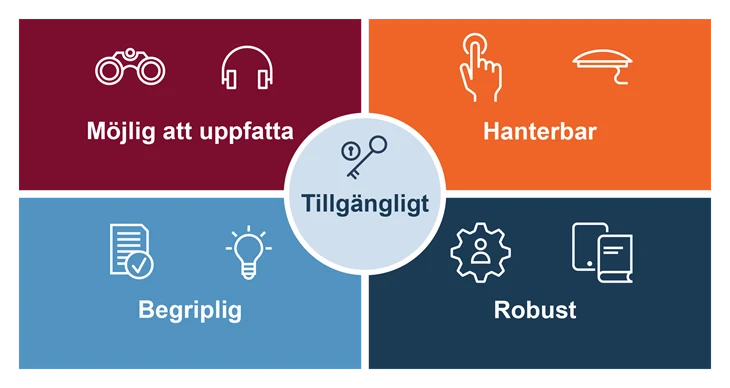 Bilden visar de fyra grunderna för tillgänglighetsstandard.