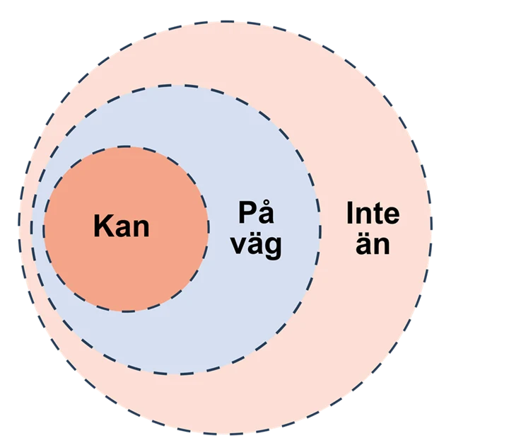Bild: Förenklad bild av Lev Vygotskijs modell över den proximala utvecklingszonen. Bild efter Vygotskij, 2001.