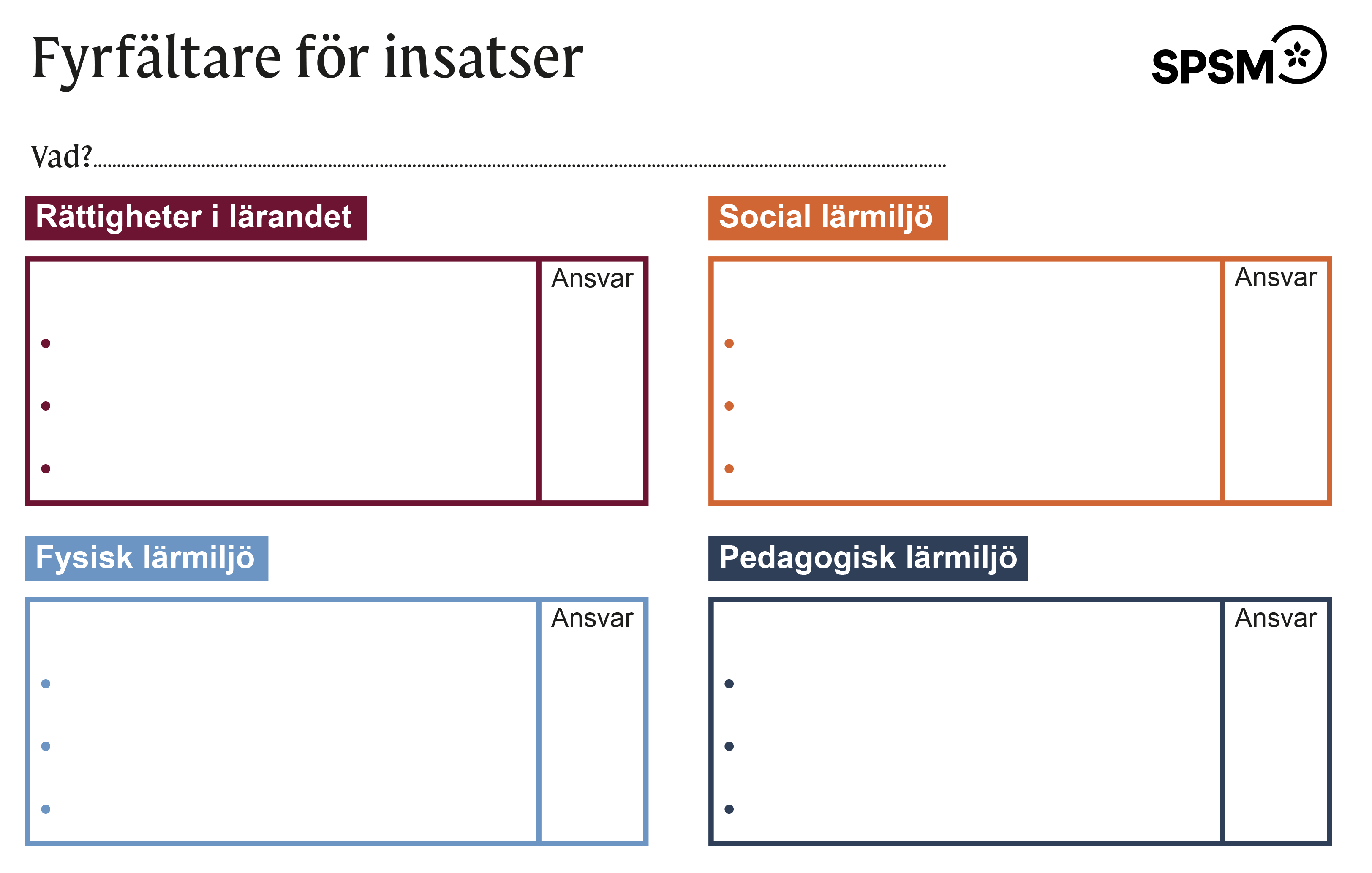 - Ta fram en fyrfältare för insatser och skriv in det som ni har kommit fram till.