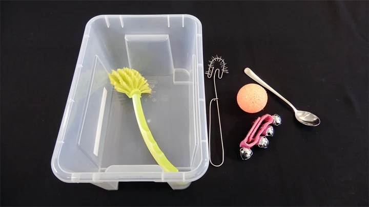 Efterhand som barnets intresse är fångat och den taktila förmågan förfinas fyller du på med material som är mer lika varandra, det vill säga saker som har allt färre detaljer som skiljer dem åt.