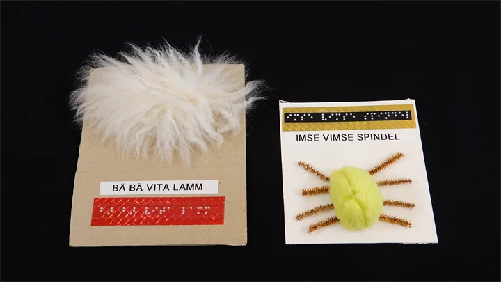 - Se till att den text som finns för barnen i svartskrift på era sångkort, dagsscheman eller veckoplaneringar också kompletteras med punktskrift.