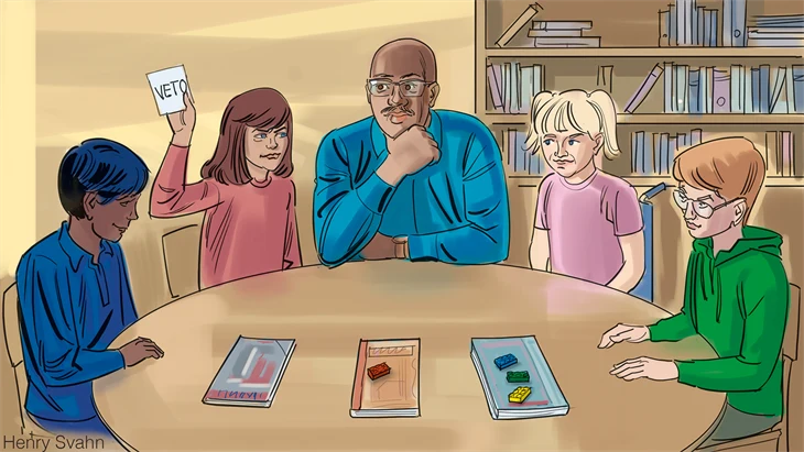 Tips! Testa att använda vetorätt i flera olika sammanhang när det ska röstas. När ni testat några gånger så är det elevernas tur att testa att ha vetorätten!