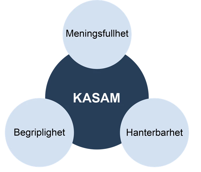 Bild: Meningsfullhet, hanterbarhet och begriplighet skapar en känsla av sammanhang, KASAM. Bild efter Antonovsky, 1991.